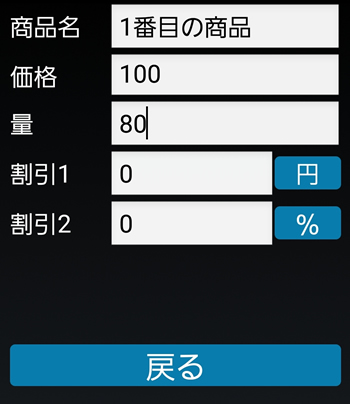 「割引1」の右隣にある「円」をタップすると、「%」に変わります。もう一度タップすると「円」に戻ります。